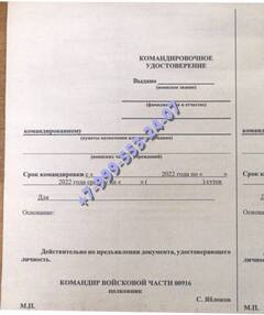Заказать командировочное удостоверение военнослужащего в Калтане можно и по иным причинам, например, необходимо срочно ехать на учения или в зону боевых действий. В таком случае следует обращаться к руководству с заявлением. Если человек потерял, или испортил документы, он может обратиться в нашу компанию. Купить командировочное удостоверение военнослужащего с доставкой мы предлагаем недорого.